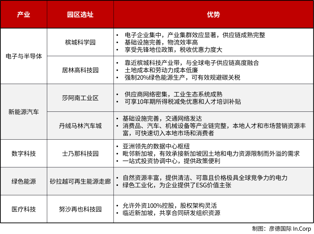 近年来,马来西亚通过强化外资激励政策与区域开发并举,持续优化投资环境,并根据具体区域实际情况,制定了不同的重点发展行业。对企业而言,结合产业发展和实际需求,选择合适自身发展战略的园区,是有效出海的重要一步。